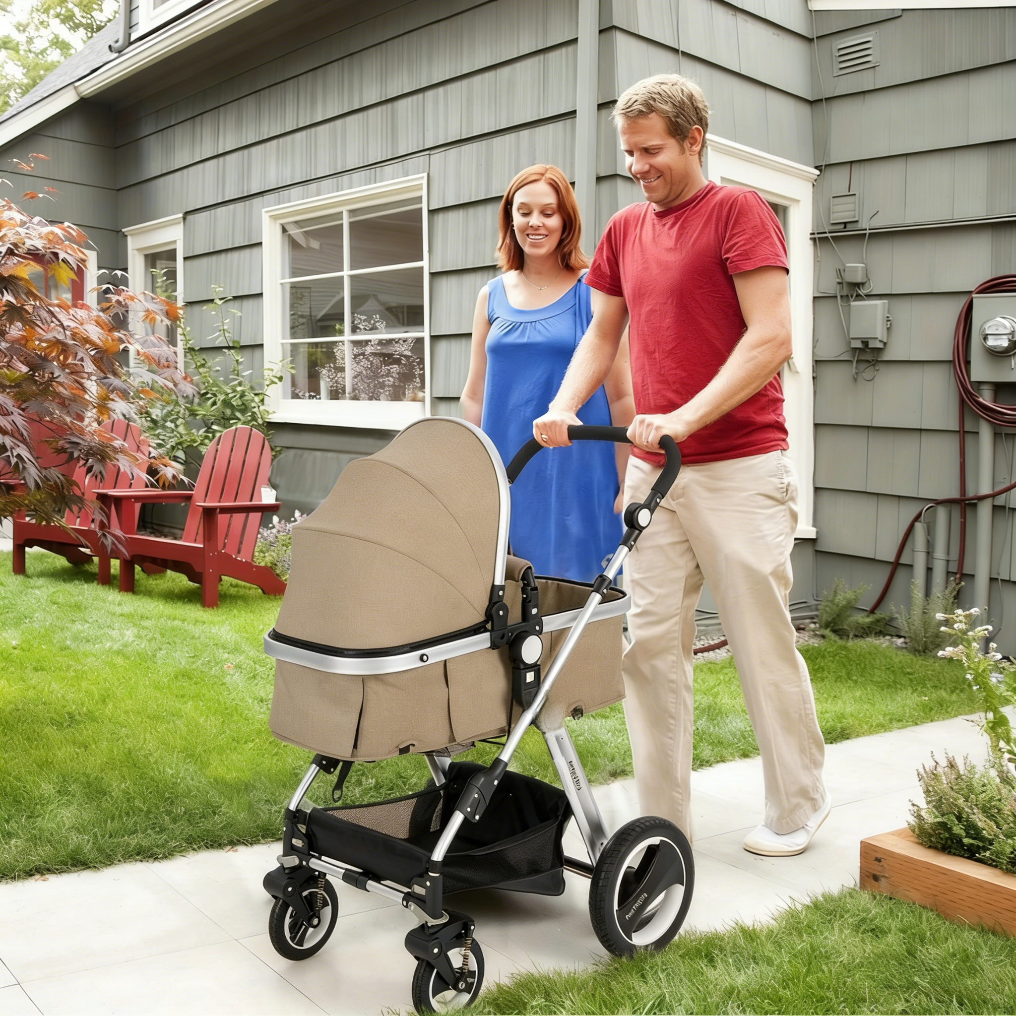MAXMASS convertible stroller: high view, shock-absorbing rubber wheels, foldable, cup holder for newborns-toddlers.